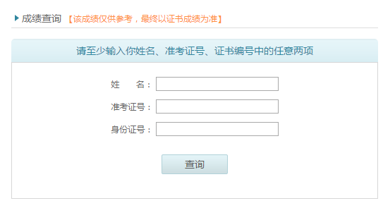 成績查詢【該成績僅供參考,最終以證書成績?yōu)闇?zhǔn)】 成績查詢系統(tǒng)